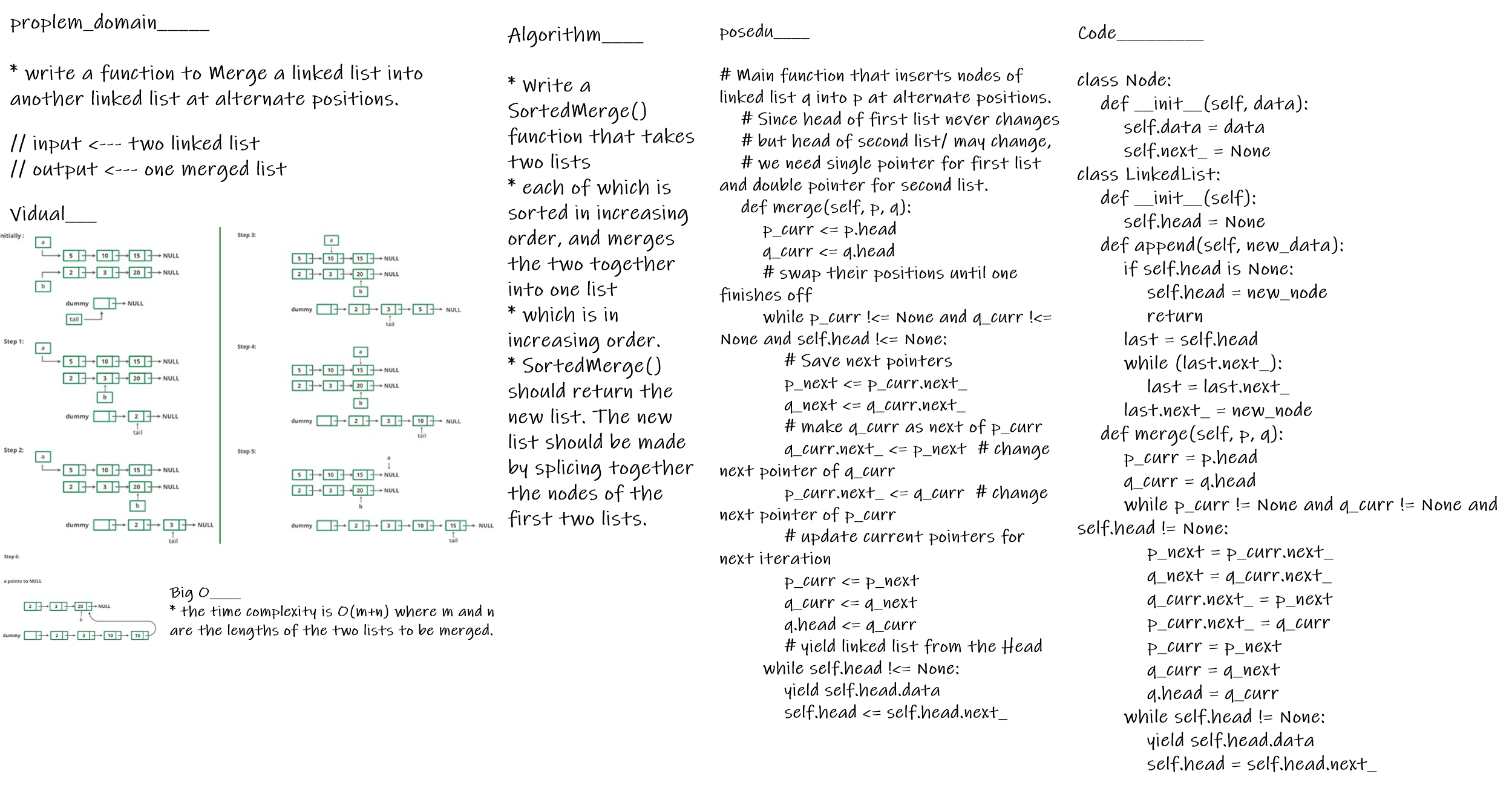 - The idea is to run a loop while there are available positions in first loop and insert nodes of second list by changing pointers.