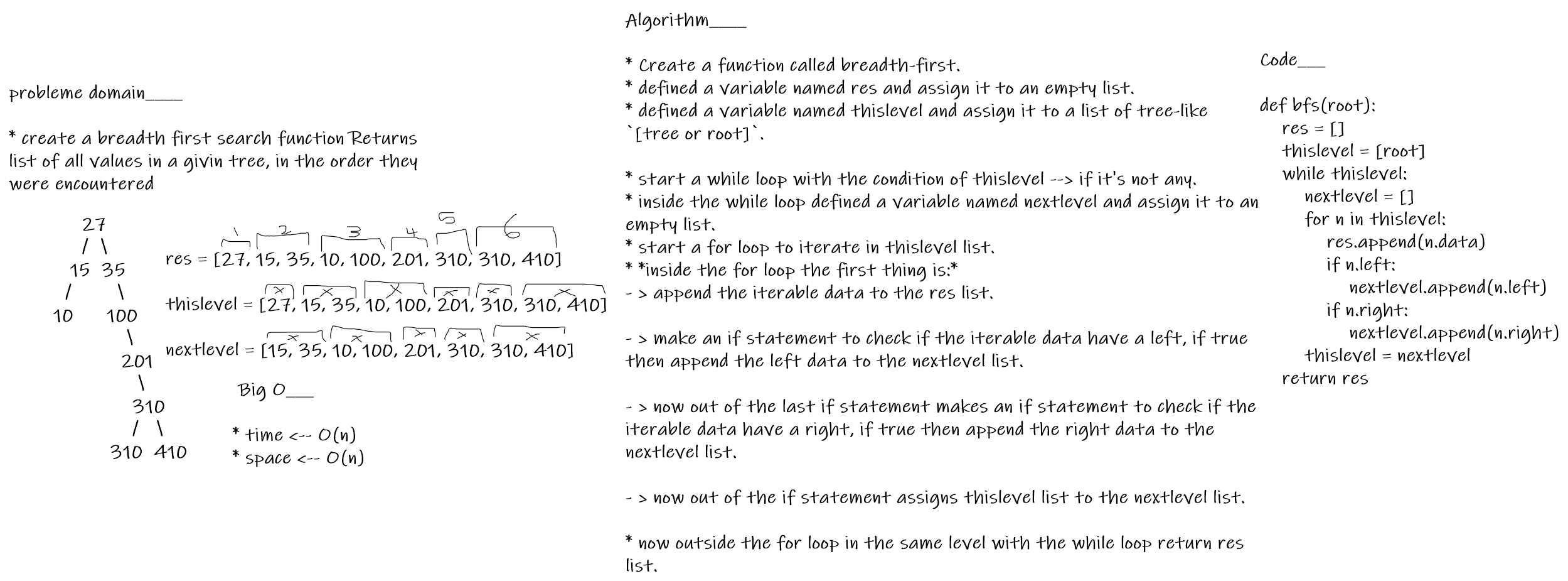 breadth first search function Returns list of all values in a givin tree, in the order they were encountered