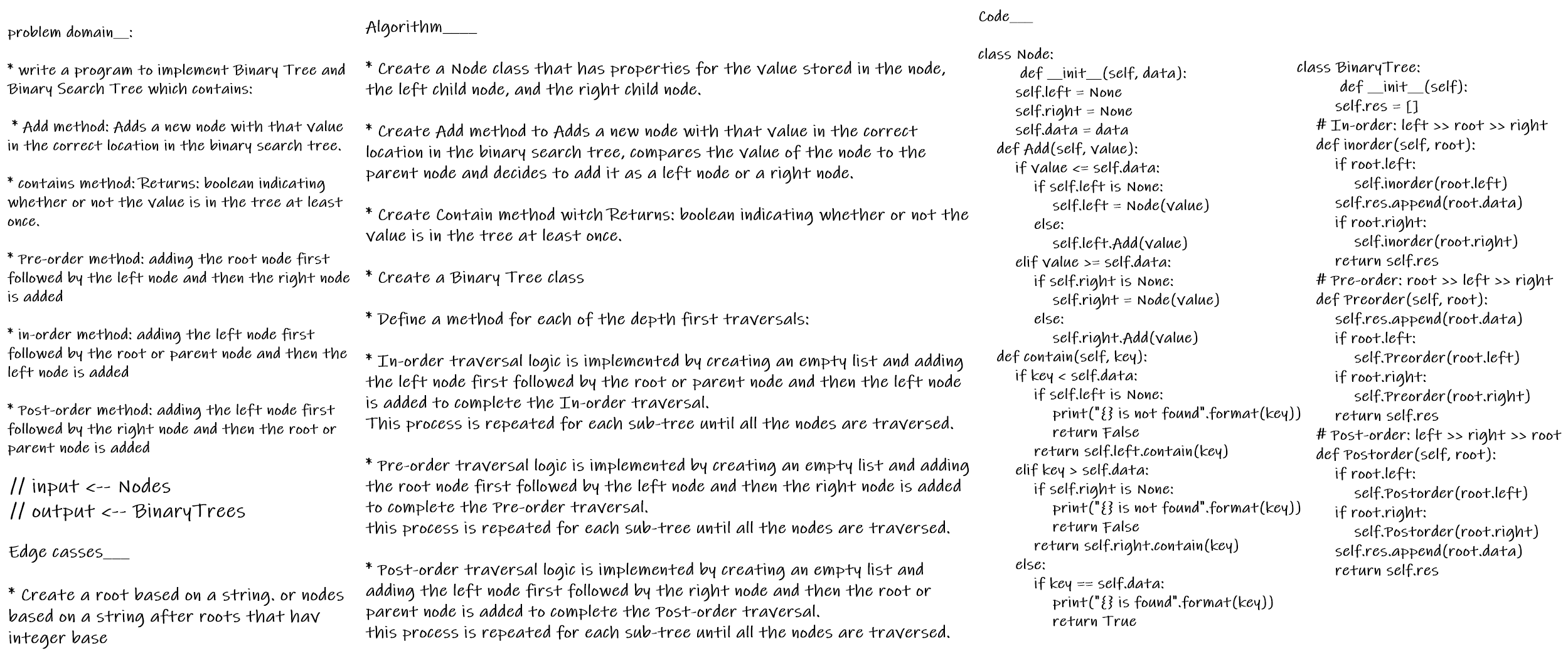 Create a Binary Tree class Define a method for each of the depth first traversals: